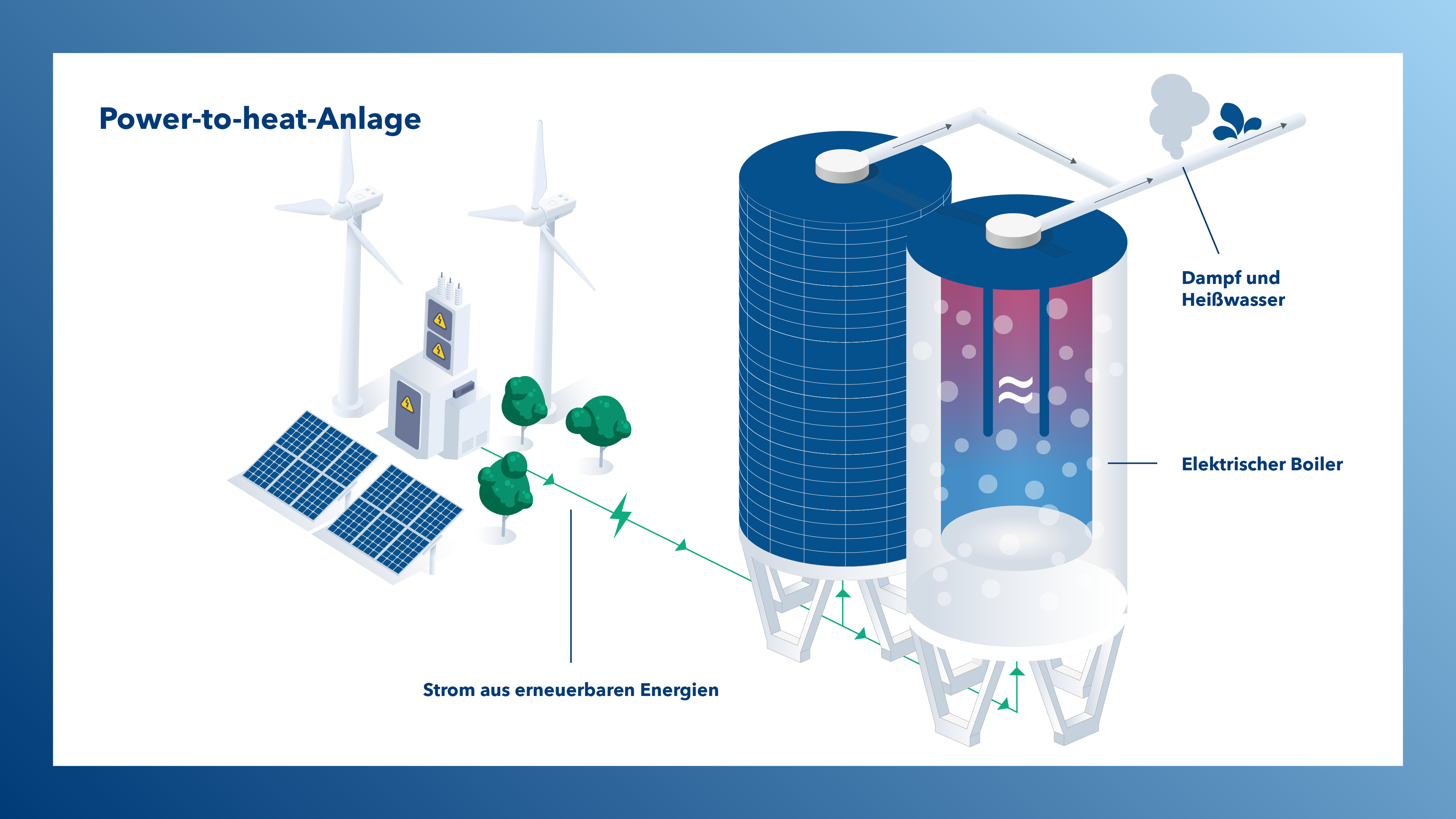 Zur Reduzierung unseres Erdgasverbrauchs und der damit verbundenen CO₂-Emissionen betreiben wir an unseren deutschen Standorten Werra, Neuhof-Ellers und Zielitz sogenannte Power-to-Heat-(PtH-)Kessel*. In diesen Anlagen wird Strom zur Erzeugung von Wärme eingesetzt.